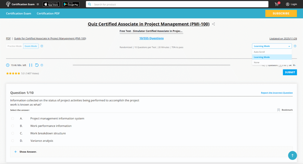 - The Official PMI Resources: PMI Certification itself does have some sample questions and an exam simulator for the PMP, which shows you what quality looks like.